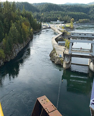 A brief stop on the Box Canyon trestle bridge showed the full width of the Pend Oreille River. On the upstream side, nature’s forces had carved the steep walls of Box Canyon. On the downstream side, Box Canyon Dam captures the water’s power to create electricity.