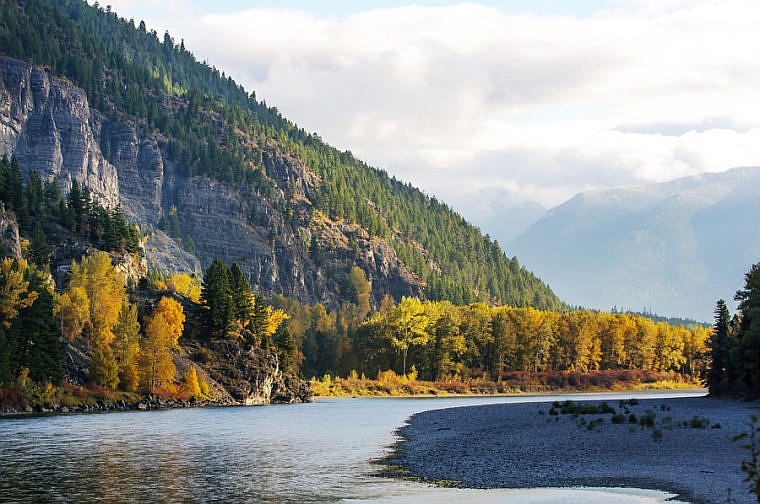 Sun illuminates fall-colored trees Friday morning along the main stem of the Flathead River near Hungry Horse. Oct. 11, 2013 in Hungry Horse, Montana. (Patrick Cote/Daily Inter Lake)