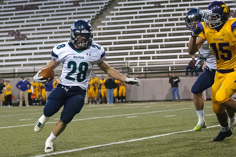 Logan Jones (28) runs the ball Friday night during Glacier's 59-41 victory over Missoula Sentinel at Washington-Grizzly Stadium in Missoula. Oct. 11, 2013 in Missoula, Montana. (Patrick Cote/Daily Inter Lake)