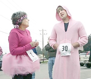 Ladies in tutus and grown men in pink robes with Anne Nicks and Brandon Puckett.