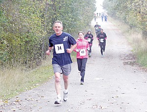 Dexter Williams leading the way after crossing the Haul bridge during Saturday's Paint It Pink Fun Run/Walk.