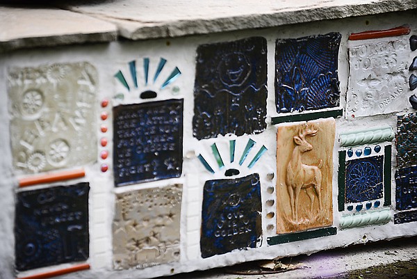 Detail of one of the new benches with personalized tiles at the Community Spirit Monument Dedication ceremony in Woodland Park on Saturday, October 12, in Kalispell. (Brenda Ahearn/Daily Inter Lake)