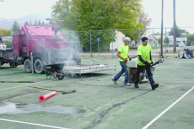 The Asphalt Doctor came out of Missoula to patch and repair the cracks.