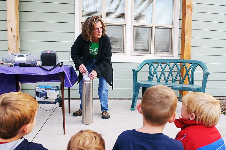 Collette Box, director of Child Developmental Discovery Center, inserts her statement into a capsule Tuesday evening during a burial ceremony for a time capsule at Discover Development Center. Oct. 15, 2013 in Kalispell, Montana. (Patrick Cote/Daily Inter Lake)