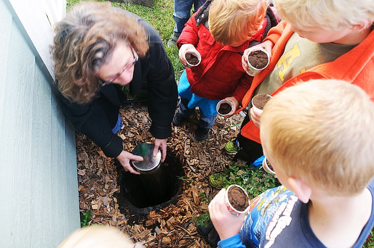 About nine children scooped cupfuls of dirt from a nearby bucket and crowded around the small hole. They took turns dropping dirt over the metal capsule that will preserve artifacts from families and children in the Flathead Valley.