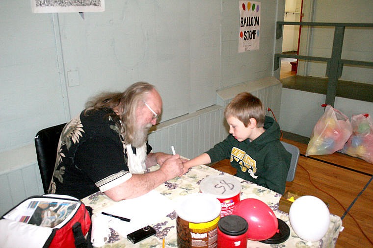 Parris Young gives Kaleb Seitz a hand-drawn "tattoodle" at the annual fall festival fundraiser for the We Care Foundation.