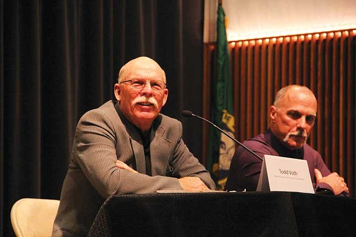 MOSES LAKE - City budget cuts, retaining an ambulance service and the Shoreline Master Plan were the top issues discussed Tuesday for Moses Lake City Council candidates Brent Reese and Todd Voth.