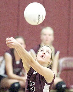 Senior Katie Lundin on a pass from Megan Hight Tuesday vs. Stillwater. Cougars in three games: 16-25, 12-25, 19-25.