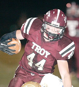 Sophomore Sean Opland on the carry for a gain of 8 in first quarter action vs. Thompson Falls.