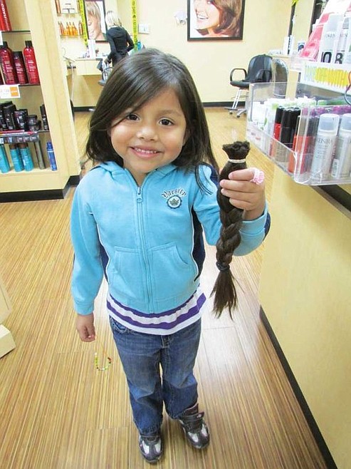 Jayden had about 13 inches of hair cut off at the SmartStyle Salon inside Walmart recently, her mother Diana Picazo said. They saved the ponytail and will be sending it off to the non-profit Locks of Love, she said.