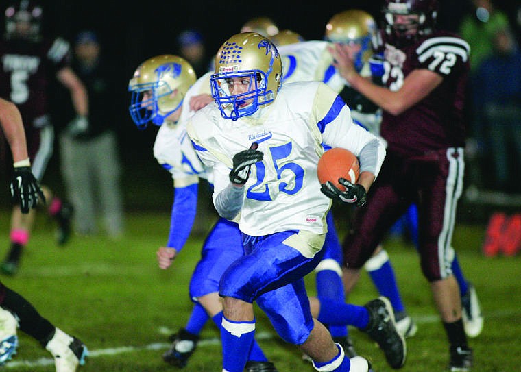 Senior Nate Norris carries the ball in the first quarter against Troy. Thompson Falls would lose the game 12-42 despite their good effort.