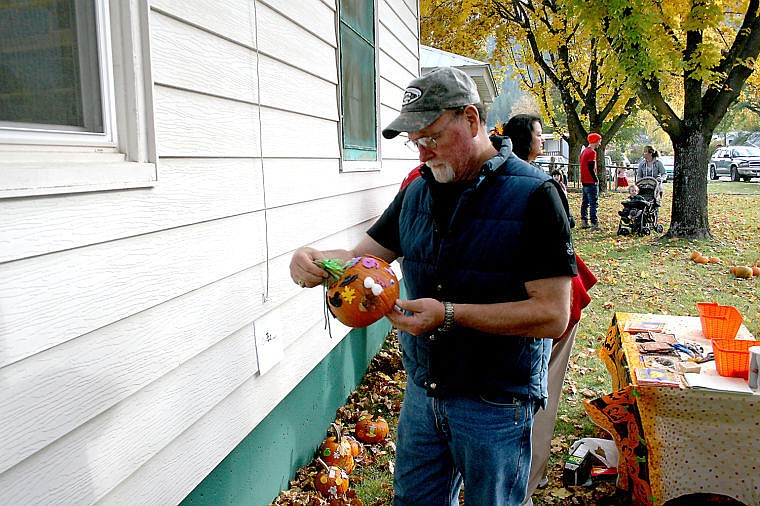 Rick Lewis judges one of the pumpkins during the annual pumpkin decorating contest at the Mineral County Library. The free event allowed kids to get into the spirit of Halloween.