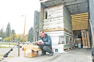 Warren Winn of Libby Heating and Cooling studies the assembly manual of the 10'x14' walk-in freezer Thursday as crews prepare to unload the three crates totaling 2,802 lbs.