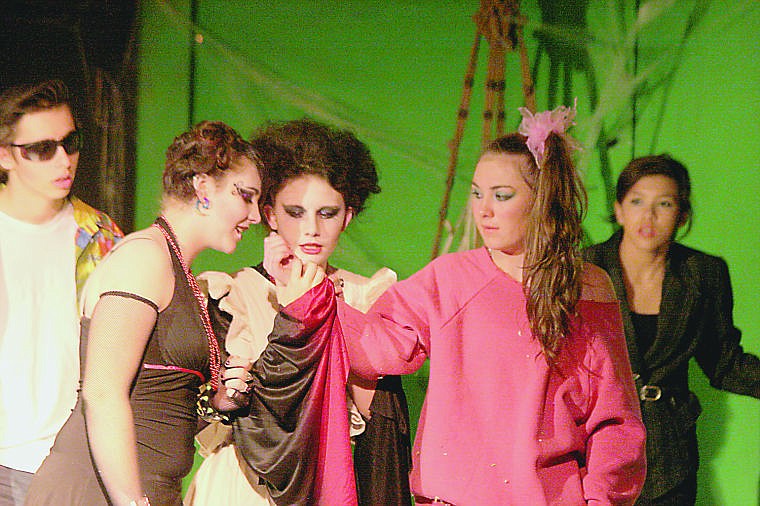 Tierra Person as Scarlett Bytes and Hannah Knight as Elvira Bytes smell blood on Candy played by Tanna Cole during The Family Bytes drama performance put on my Plains High School.