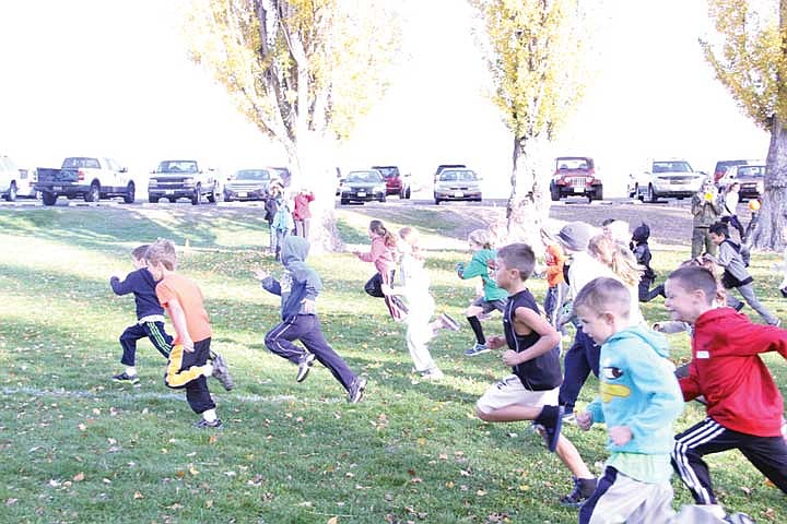 MOSES LAKE - Hundreds of children, many in costumes, bared a cold weekend morning for the Great Pumpkin Race at Blue Heron Park in Moses Lake.