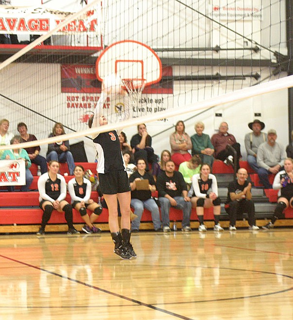 Senior Felicia Earhart passes the ball to her teammate in a recent game against Hot Springs. The Trotters would take the match in five sets.