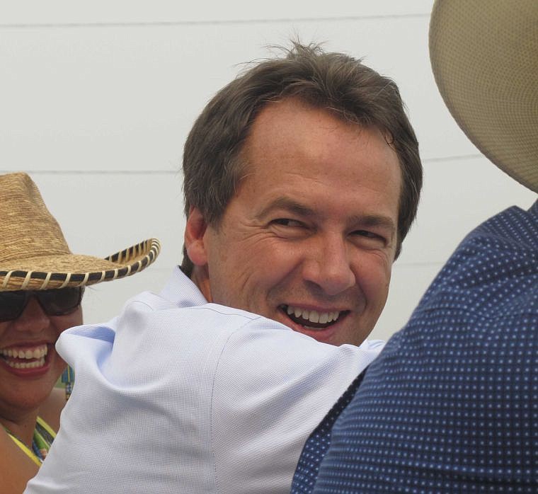 On Aug. 16, Gov. Steve Bullock laughs during a visit to the rodeo at the Crow Fair at Crow Agency. Bullock has stressed the importance of seeking collaboration during his first eight months in office. (AP Photo/Matt Gouras)