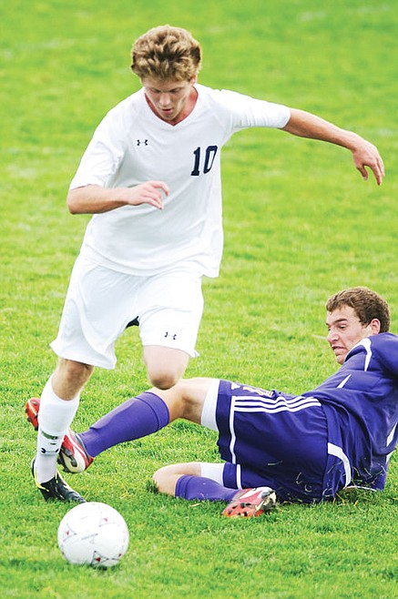 Glacier senior Connor Brandon (10) jumps over the tackle attempt by a Missoula Sentinel defender Tuesday evening during Glacier's home match.