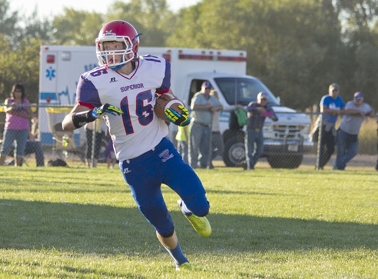 Superior Bobcat running back Tucker Smith carries the ball against Charlo during the season opener on Saturday.