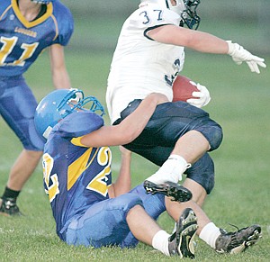 Senior D.J. Maefau tackles Dylan Flack in second quarter action vs. Anaconda Friday.