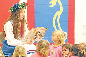 Nordicfest Princess Annie Wilkinson reads from "Trouble with Trolls" to the combined third grade classes of Miss Coy and Mrs. MacKay Monday afternoon at Morrison Elementary. Casey Kansler, center, seems especially mesmerized.