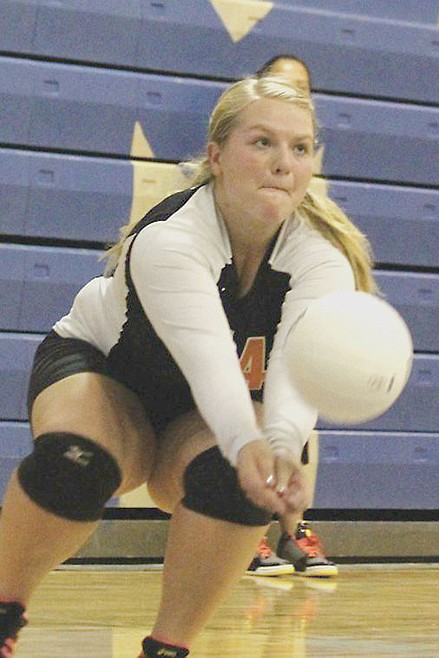 Tia Thompson digs for the ball against Florence on Sept. 7.