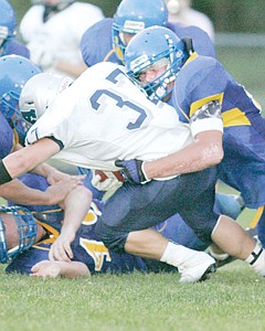 Tarasik Krisanov tackling Dylan Flack 2nd quarter action vs. Anaconda 9-6-13