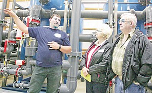 Montanore Minerals' water plant manager Jared Waxbom, left, explains the inner workings of the facility to Ron and Mary Downey during Tuesday's tour.