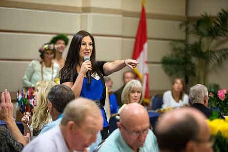 The commencement meeting took place in a bay of the Coeur d'Alene Resort. Rotary members wore tropical garb to match this year's Hawaiian theme, complete with fresh floral haku leis sent in from the islands. Ade said she has worked to make the rose sale something everyone can have fun doing.