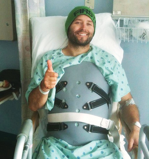 “I just dropped right into the crevasse,” he said. “From what I remember, it was violent and fast. I hit the front side, the far wall, and bounced back, and I must have dropped straight down, and I ended up on my butt with a broken back. I just knew something was severely wrong. The pain was unbelievable.”