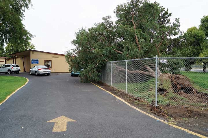 MOSES LAKE - The thunderstorm that rolled through town Sunday night discombobulated some construction work underway on the Big Bend Community College campus, and knocked down eight trees, according to college officials.