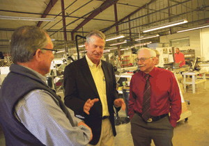 A tour of local businesses reinforced that perspective. First, Little dropped by Cygnus, Inc., a manufacturer of high-quality sheet metal and parts used in aircraft production. During a tour of the production facilities, Ambrosiani told Little that the business could benefit greatly from an increase in skilled workers ready to step into the job without much additional training.