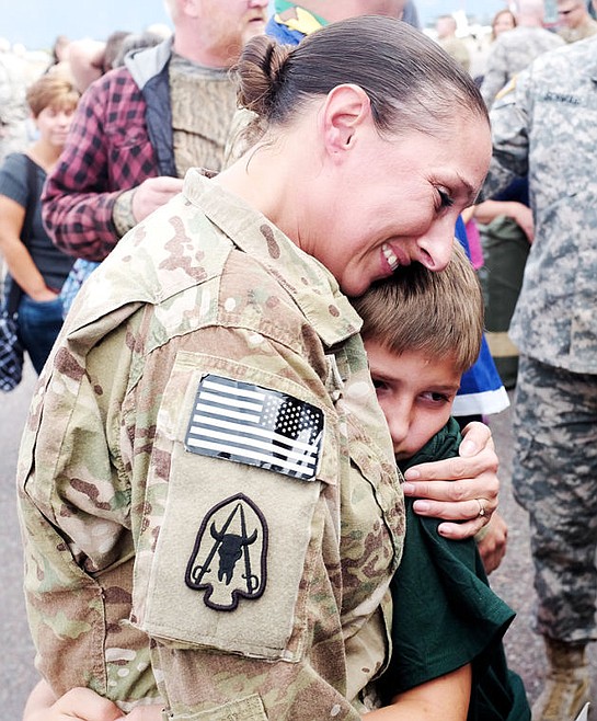 A rush of excitement moved through the crowd when the plane door opened and soldiers began making their way down the steps to a reception line that included Gov. Steve Bullock, Lt. Gov. John Walsh, Civilian Aid to the Secretary of the Army Ken Inabnit, Patriot Guard Riders and Native American Honor Guards.
