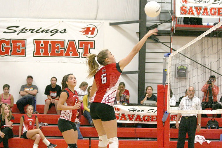 Nicole Zavoianu spikes the ball against Hot Springs during a recent game. Noxon would take the Lady Savage Heat the distance eventually losing two to three.