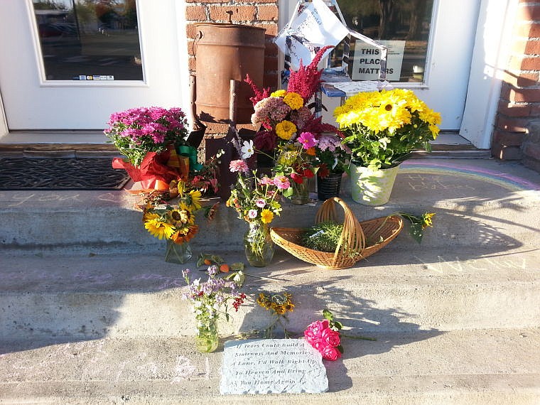Flowers are being left outside the SLAM (Soap Lake Arts Museum) building on Daisy Street in Soap Lake, where Blake showed his and other artists’ work, had parties and music jams, and lived, according to the Soap Lake for Locals Facebook page.