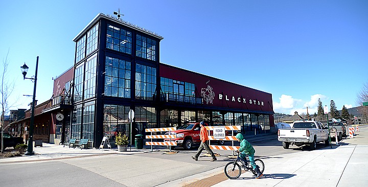 A section of Railway Street was closed to traffic on Tuesday, April 1, at the Great Northern Brewing Company in Whitefish. (Brenda Ahearn/Daily Inter Lake)