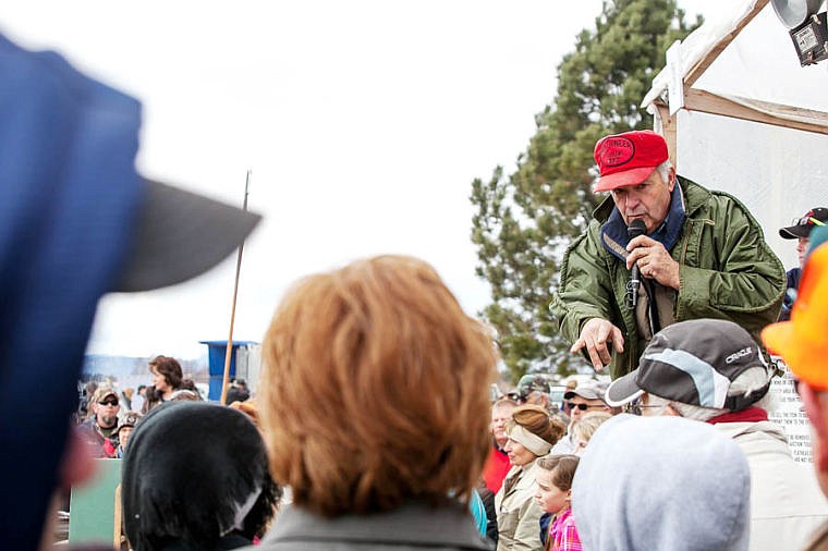An auctioneer takes a bid Saturday morning during the 48th Annual Creston Auction. April 5, 2014 in Creston, Montana. (Patrick Cote/Daily Inter Lake)