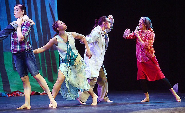 Writer, producer and choreographer Karen Kaufmann, right, and CoMotion dancers perform "Fire Speaks the Land" on Thursday, March 27, at the Whitefish Performing Arts Center. (Brenda Ahearn/Daily Inter Lake)