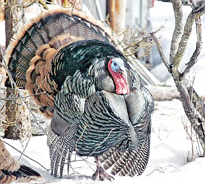 Tom turkey displays his colors under an apple tree in the Pipe Creek area, a sure sign of spring.