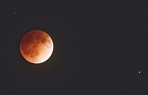 The lunar eclipse as seen from Big Mountain on Tuesday morning, April 15, at 1:17 a.m. (Brenda Ahearn/Daily Inter Lake)