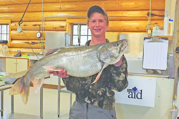 Fourteen-year-old Danner Shima, of Kalispell, was fishing with his brother, Austin, and grandfather, Mike Shima, of Polson, on Friday. Danner caught a fish and immediately knew it was a big one. His line began screaming as the big fish went to the bottom of the lake and Austin and Mike began giving advice. Austin told Danner that it was going to be a winner. It took Danner 45 minutes to get the big guy in. They were pretty excited when they realized how large the lake trout actually was.