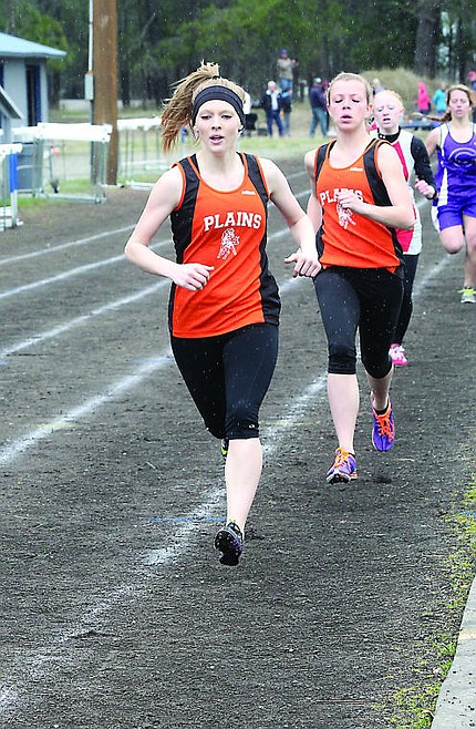 Kimberly Earhart and Demi Horton springs towards the finish line at the Thompson Falls Invitational.