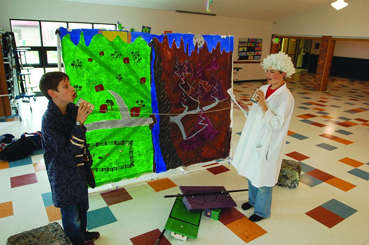 Evan Benton and Grant Gibson practice part of their skit for Bigfork’s Destination Imagination team.