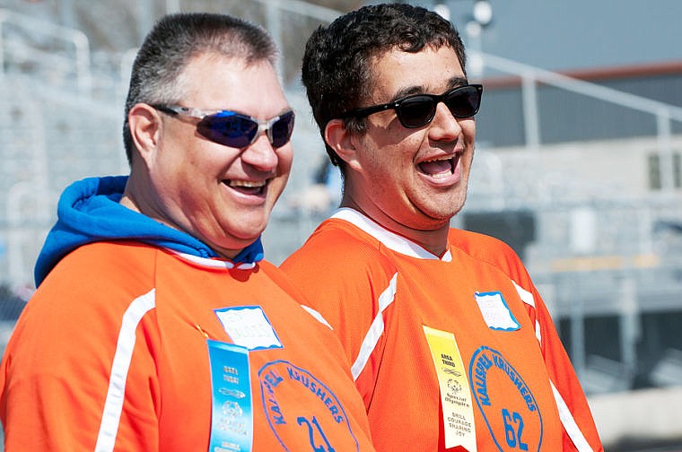 Patrick Cote/Daily Inter Lake After finishing the final leg of her 91-mile fundraising run, Kelda Latham-Bennett, right, is greeted by Special Olympics athlete Chrissy Siefke in the Flathead Industries parking lot Monday afternoon. Latham-Bennett raised more than $4,000 for Special Olympics of Montana by running from Libby to Kalispell. The two-day run started Sunday at Achievements' Parkside Thrift Store in Libby and concluded Monday afternoon at Flathead Industries in Kalispell. Monday, June 4, 2012 in Kalispell, Montana.