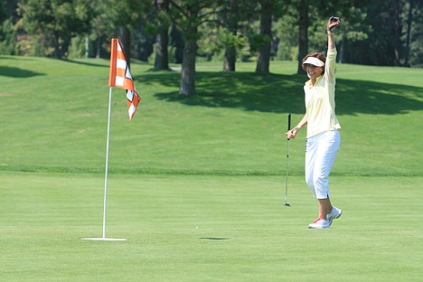 COEUR d'ALENE - Carl and Susie Lewis of Coeur d'Alene were happy to test out the 15-inch cups on the greens at The Coeur d'Alene Resort Golf Course on Sunday.