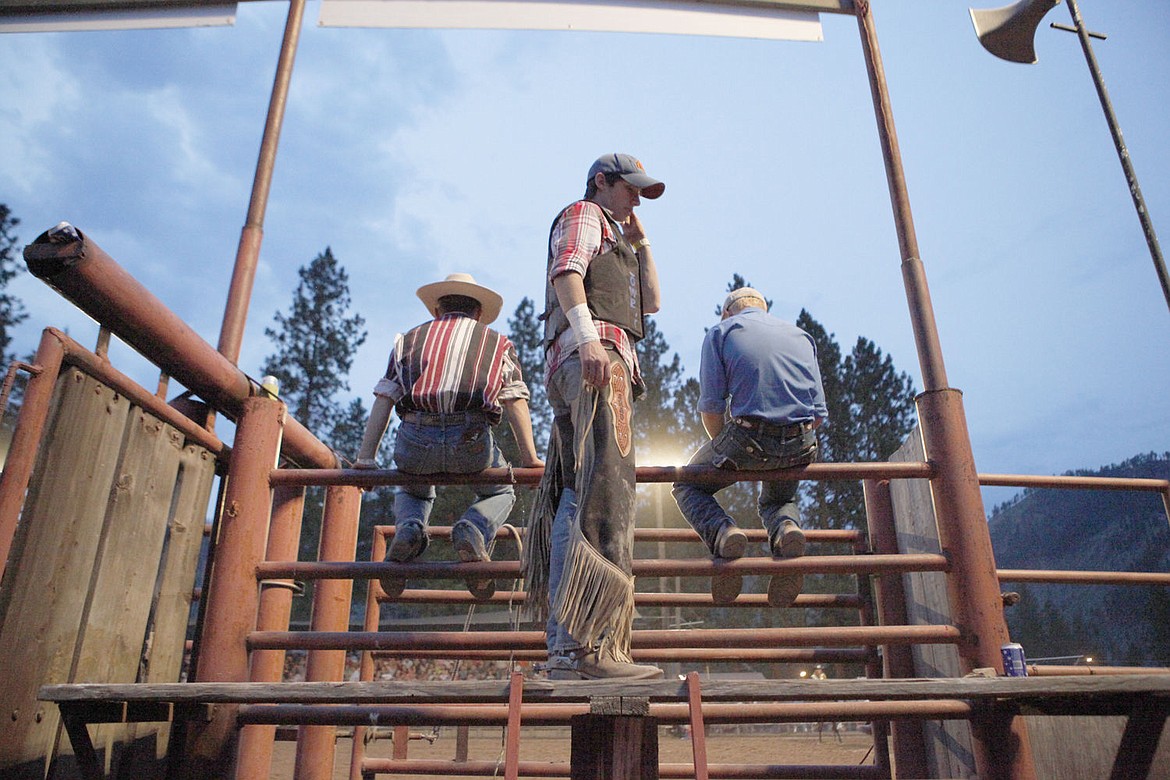Kenny Stockard, center, of Superior took his first bull ride at the 2014 Mineral County Fair.