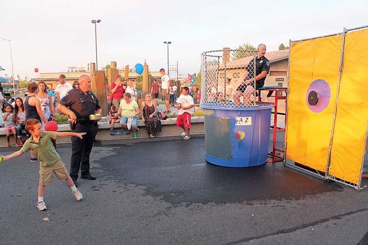 Ruffin and Jones - who took turns sitting in a giant dunk tank - were two of the more popular attractions during the town's National Night Out celebration in downtown Moses Lake.