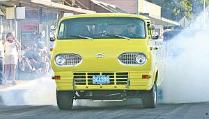Keith Dondaneau of Golden, B.C. in a '63 Ford Econoline pickup with a 347 lays rubber on Mineral Avenue Friday (2011)