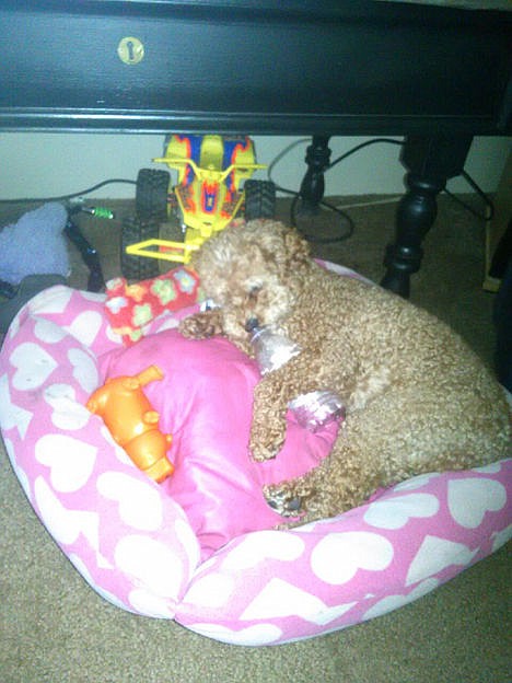 The 3-year-old poodle was a gift to his daughter from her grandpa, who recently died of ALS, Edelblute said.