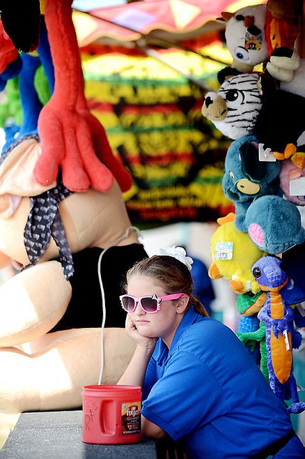 Jayden Stebbins, 12, of Coeur d'Alene, Idaho, waits for customers at her booth at the Northwest Montana Fair on Wednesday, August 13. (Brenda Ahearn/Daily Inter Lake)